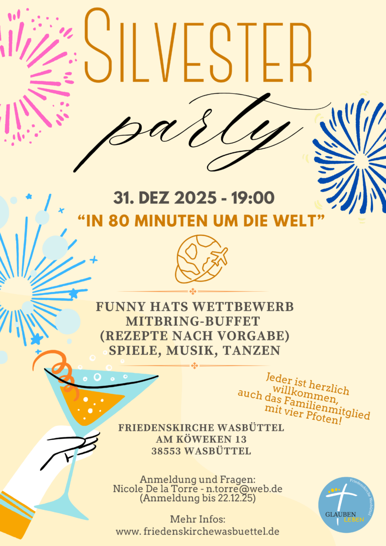 Herzliche Einladung zur Silvesterparty in der Friedenskirche Wasbüttel!